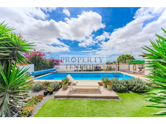 PROPERTY TENERIFE presenta esta encantadora villa en Granadilla de Abona, ubicada entre el aeropuerto de Tenerife Sur y San Isidro. Una propiedad que combina privacidad, vistas espectaculares y total comodidad.